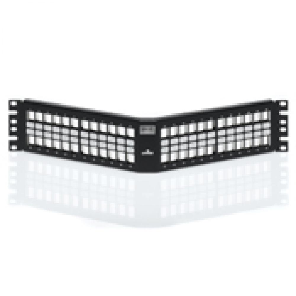 Leviton® QuickPort® 4S256-S48 2-RU Angled Shielded Patch Panel, 48 Ports, CAT 5e/6/6a, Stainless Steel