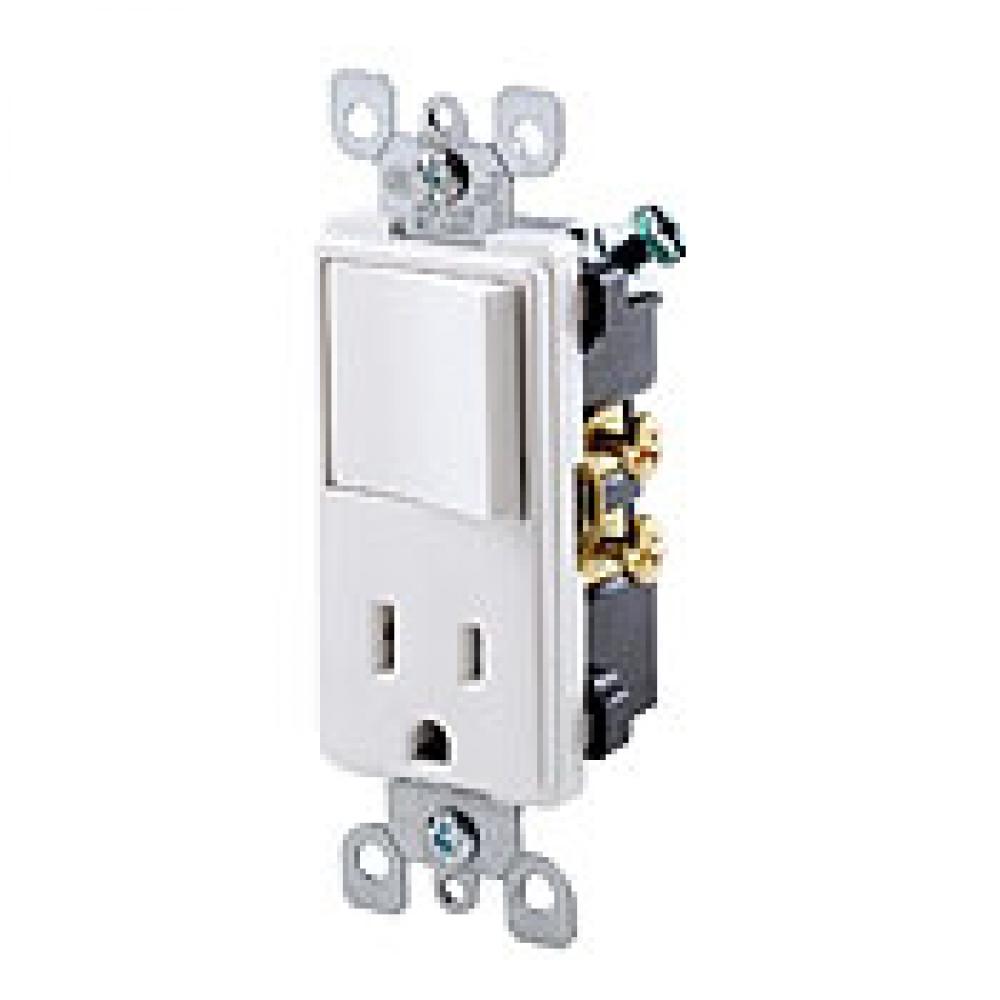 Leviton® Decora® 5625-W 3-Wire Grounding Combination Switch With Receptacle, 20 A, 120/277 VAC, 1 hp at 120 VAC, 1 Pole