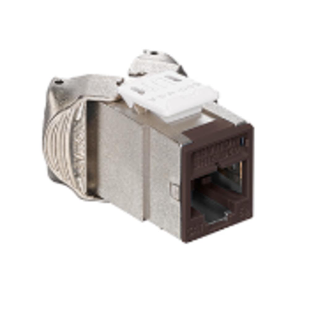 Leviton® Atlas-X1™ QuickPort® 5ESJK-RB5 Component Rated Shielded Connector, CAT 5e Module, Surface Mount, Die Cast Zinc, Brown