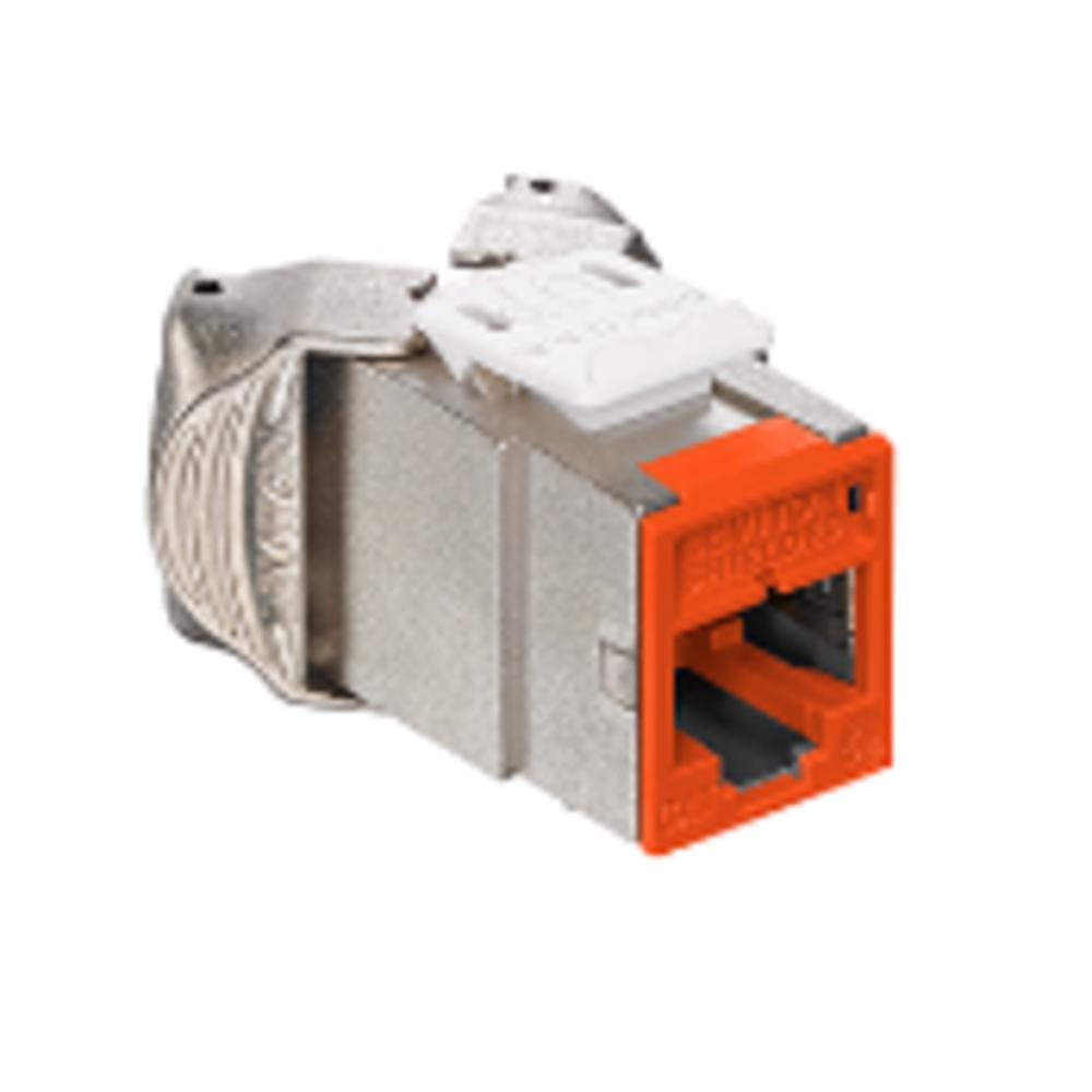 Leviton® Atlas-X1™ QuickPort® 5ESJK-RO5 Component Rated Shielded Connector, CAT 5e Module, Surface Mount, Die Cast Zinc, Orange