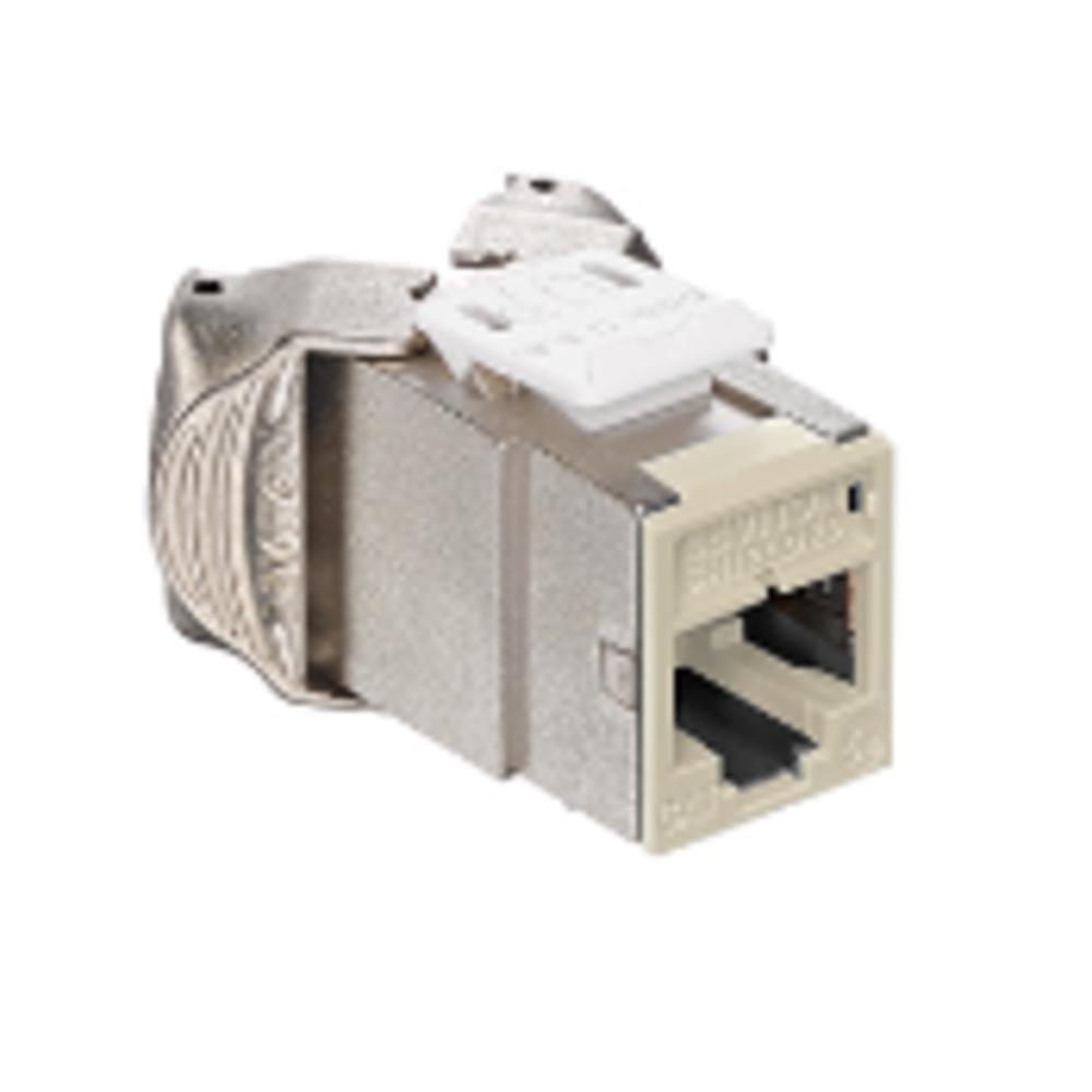 Leviton® Atlas-X1™ QuickPort® 5ESJK-RT5 Component Rated Shielded Connector, CAT 5e Module, Surface Mount, Die Cast Zinc, Light Almond