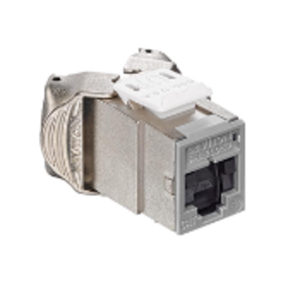 Leviton® Atlas-X1™ QuickPort® 5ESJK-SG5 Component Rated Shielded Connector With Shutters, CAT 5e Module, Surface Mount, Die Cast Zinc, Gray