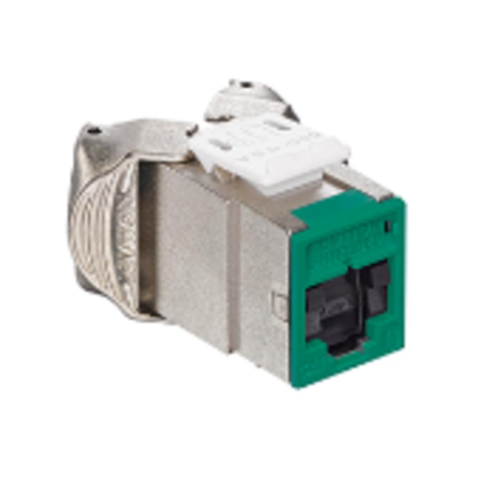 Leviton® Atlas-X1™ QuickPort® 5ESJK-SV5 Component Rated Shielded Connector With Shutters, CAT 5e Module, Surface Mount, Die Cast Zinc, Green