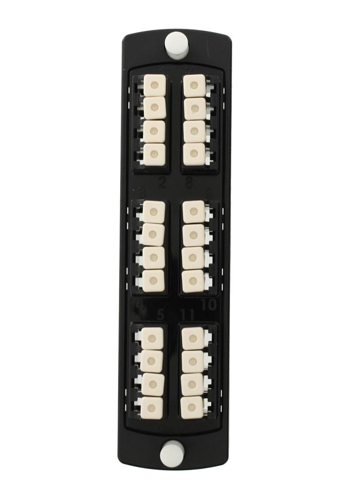 Leviton® OPT-X® 5F100-4EL SDX Precision Molded Fiber Optic Adapter Plate, LC Quad End A, LC Quad End B, (24) OM2 50/125 um Multi Mode Fiber, Zirconia Ceramic Connector