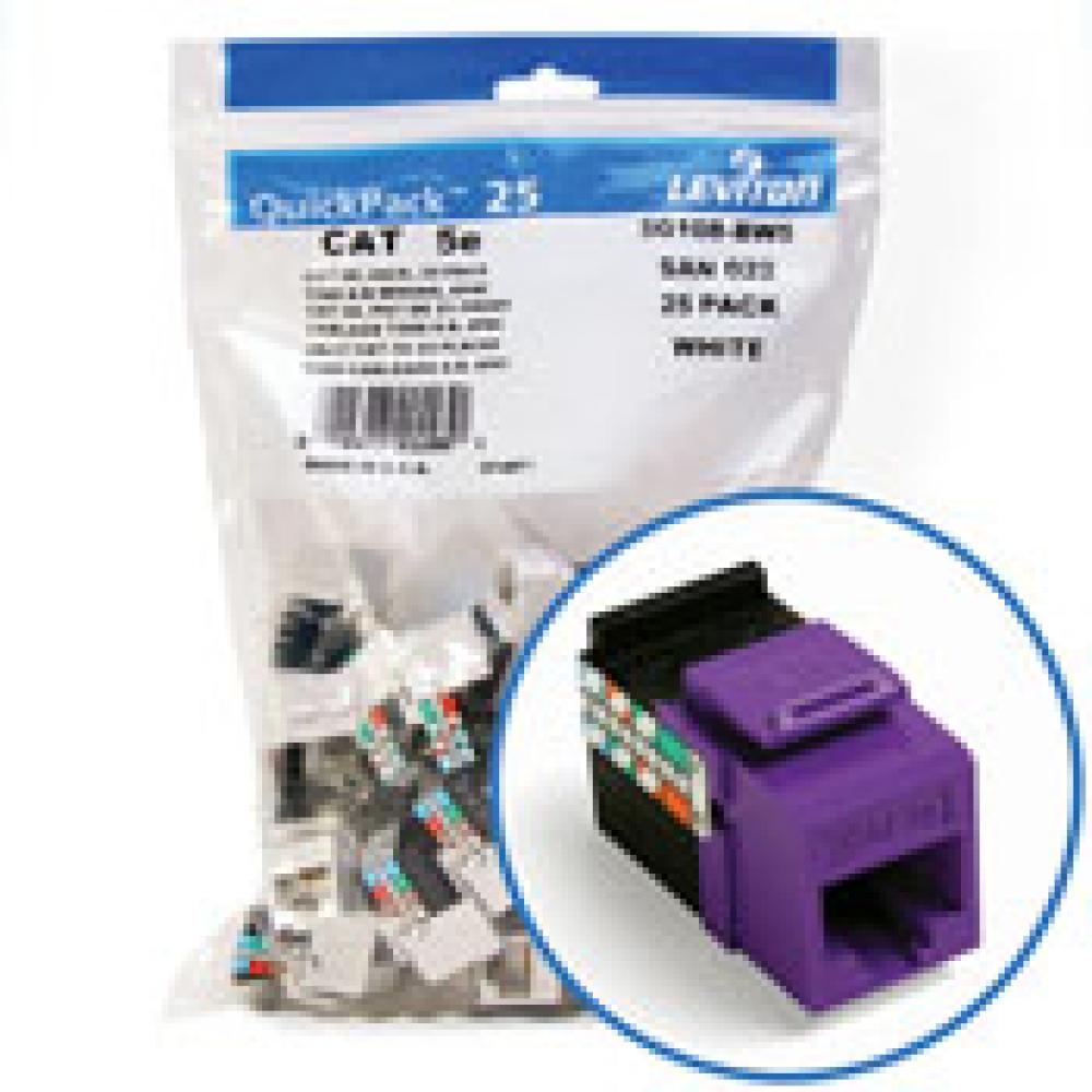 Leviton® QuickPack® eXtreme® QuickPort® 5G108-BP5 8-Conductor 8-Position UTP Connector, CAT 5e Module, Surface/Panel Mount, 1 Port, Plastic, Purple