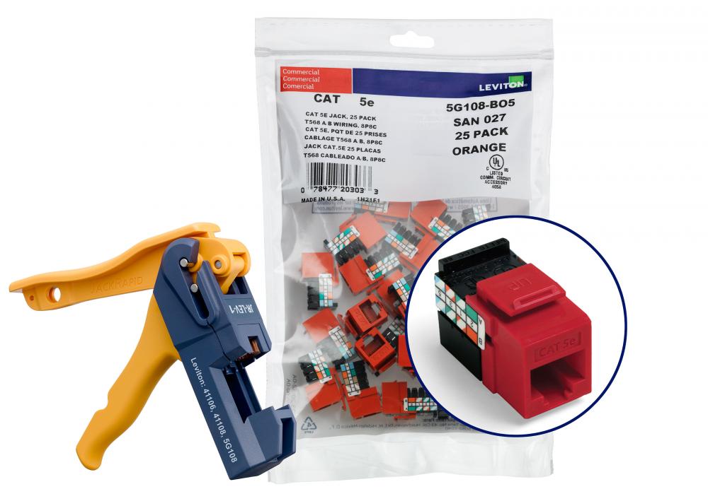 Leviton® GigaMax® 5G108-JC5 UTP Connector With Jack Rapid Tool, CAT 5e Module, Plastic, Crimson Red