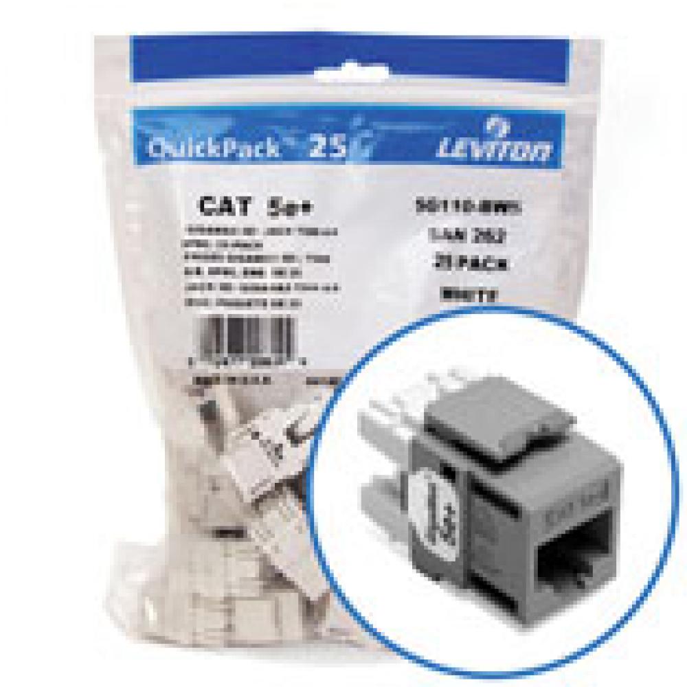 Leviton® QuickPack® eXtreme® QuickPort® 5G110-BG5 8-Conductor 8-Position Component Rated UTP Connector, CAT 5e+ Module, Surface/Panel Mount, 1 Port, Plastic, Gray