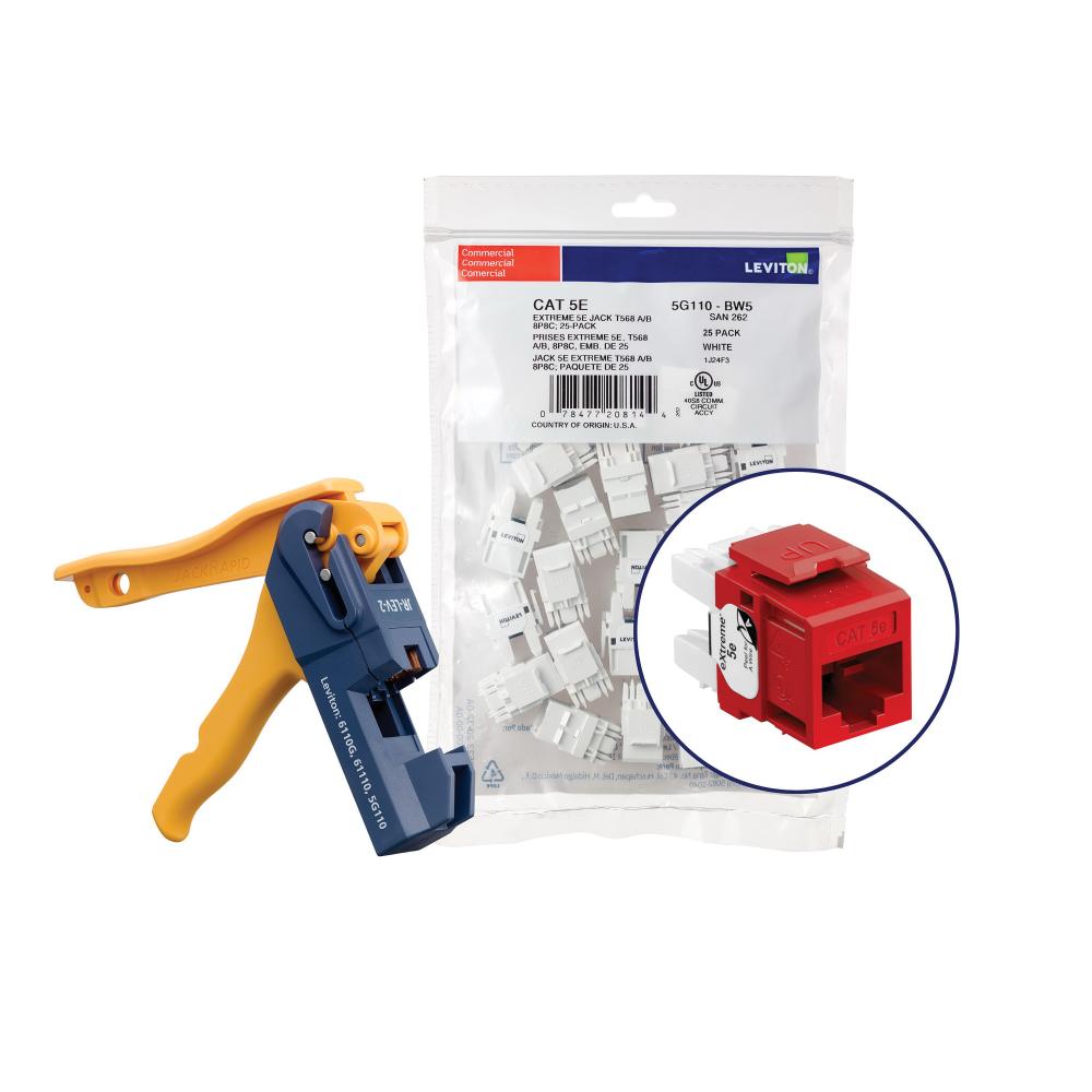 Leviton® eXtreme® 5G110-JC5 Component Rated UTP Connector With Jack Rapid Tool, CAT 5e Module, Panel Mount, Plastic, Crimson