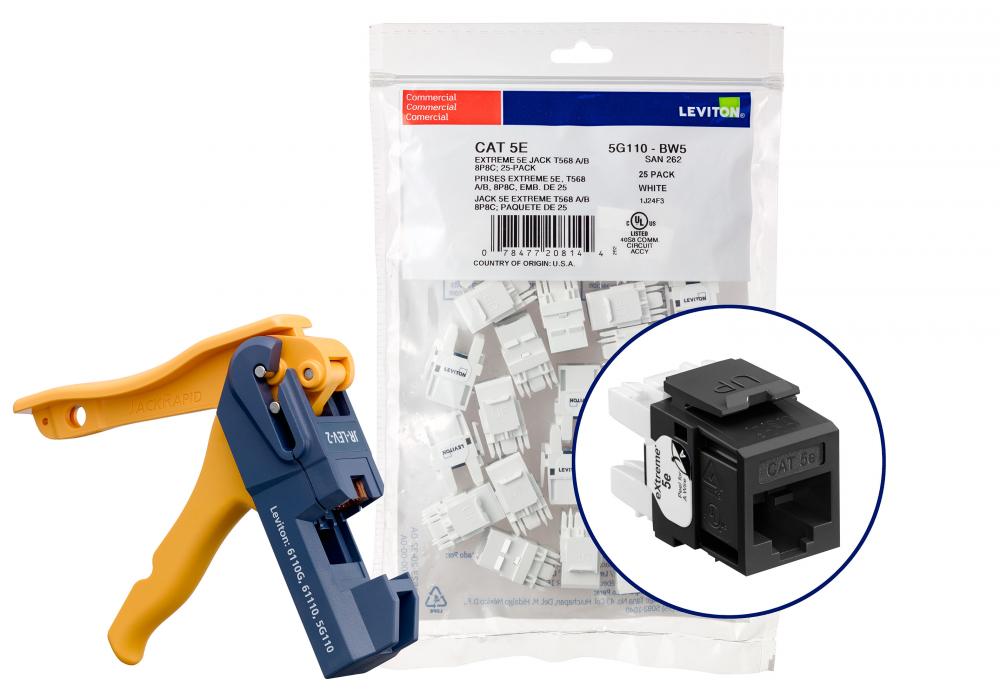 Leviton® eXtreme® 5G110-JE5 Component Rated UTP Connector With Jack Rapid Tool, CAT 5e Module, Plastic, Black
