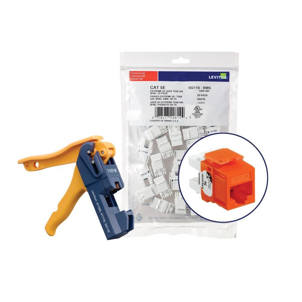 Leviton® eXtreme® 5G110-JO5 UTP Connector With Jack Rapid Tool, CAT 5e Module, Panel Mount, Plastic, Orange