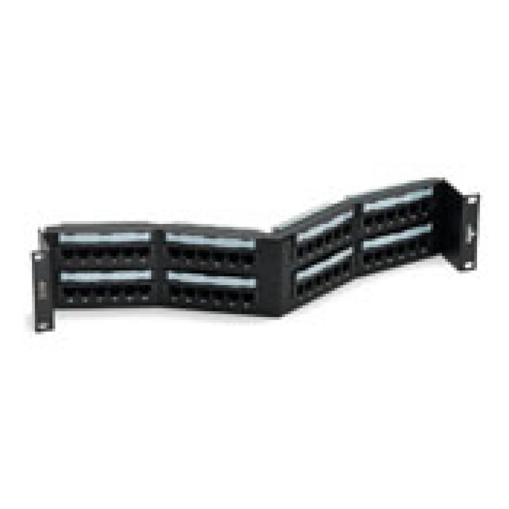 Leviton® GigaMax® 5W597-U48 2-RU 110-Style Angled Universal Recessed Patch Panel, 48 Ports, CAT 5e, Plastic/Steel