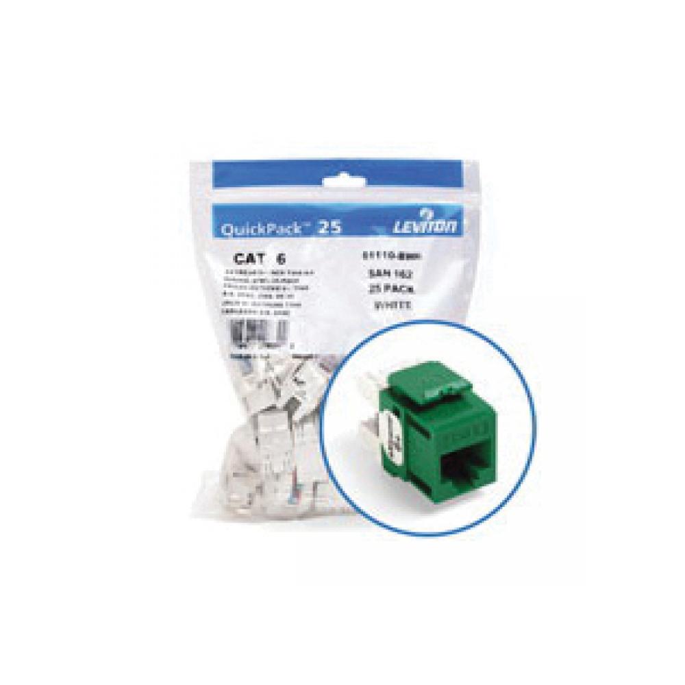 Leviton® QuickPack® eXtreme® QuickPort® 61110-BV6 8-Conductor 8-Position Channel/Component Rated UTP Connector, CAT 6+ Module, Surface/Panel Mount, 1 Port, Plastic, Green