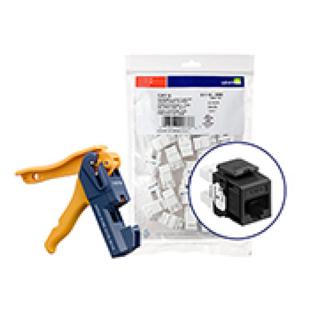 Leviton® eXtreme® QuickPort® 61110-JE6 8-Conductor 8-Position UTP Connector With Jack Rapid Tool, CAT 6 Plus Module, Panel Mount, Plastic, Black