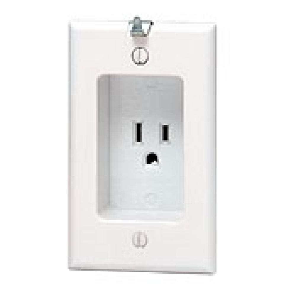 Leviton® 688-T 1-Gang Grounding Flush Mount Single Recessed Receptacle With Clock Hanger Hook, 125 VAC, 15 A, 2 Poles, 3 Wires, Light Almond
