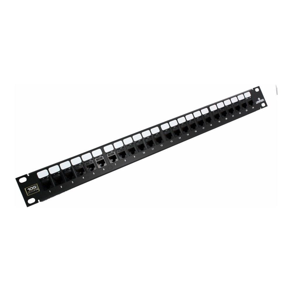 Leviton® eXtreme® 6910G-U24 10G 1-RU Flat Patch Panel, 24 Ports, CAT 6a, Steel