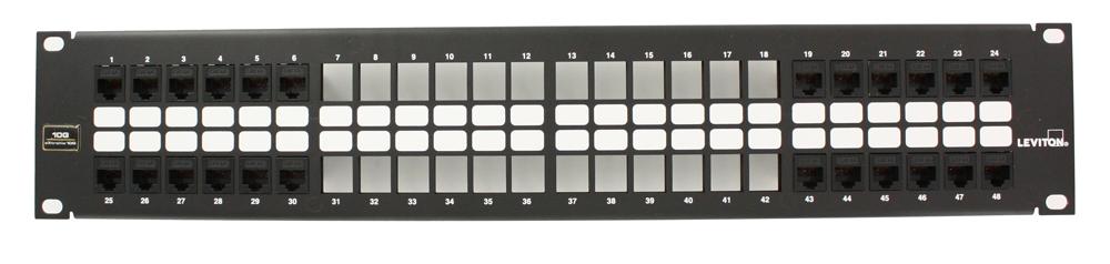 Leviton® eXtreme® 6910G-U48 2-RU Flat Patch Panel, 48 Ports, CAT 6a, Steel