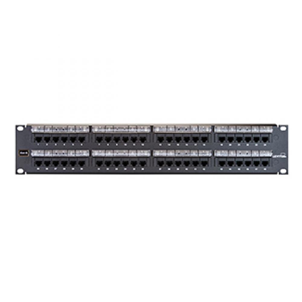 Leviton® 69586-L48 2-RU Flat Patch Panel With Magnifying Lens Label Holder, 48 Ports, CAT 6, 26 to 22 AWG Terminal, Plastic/Steel