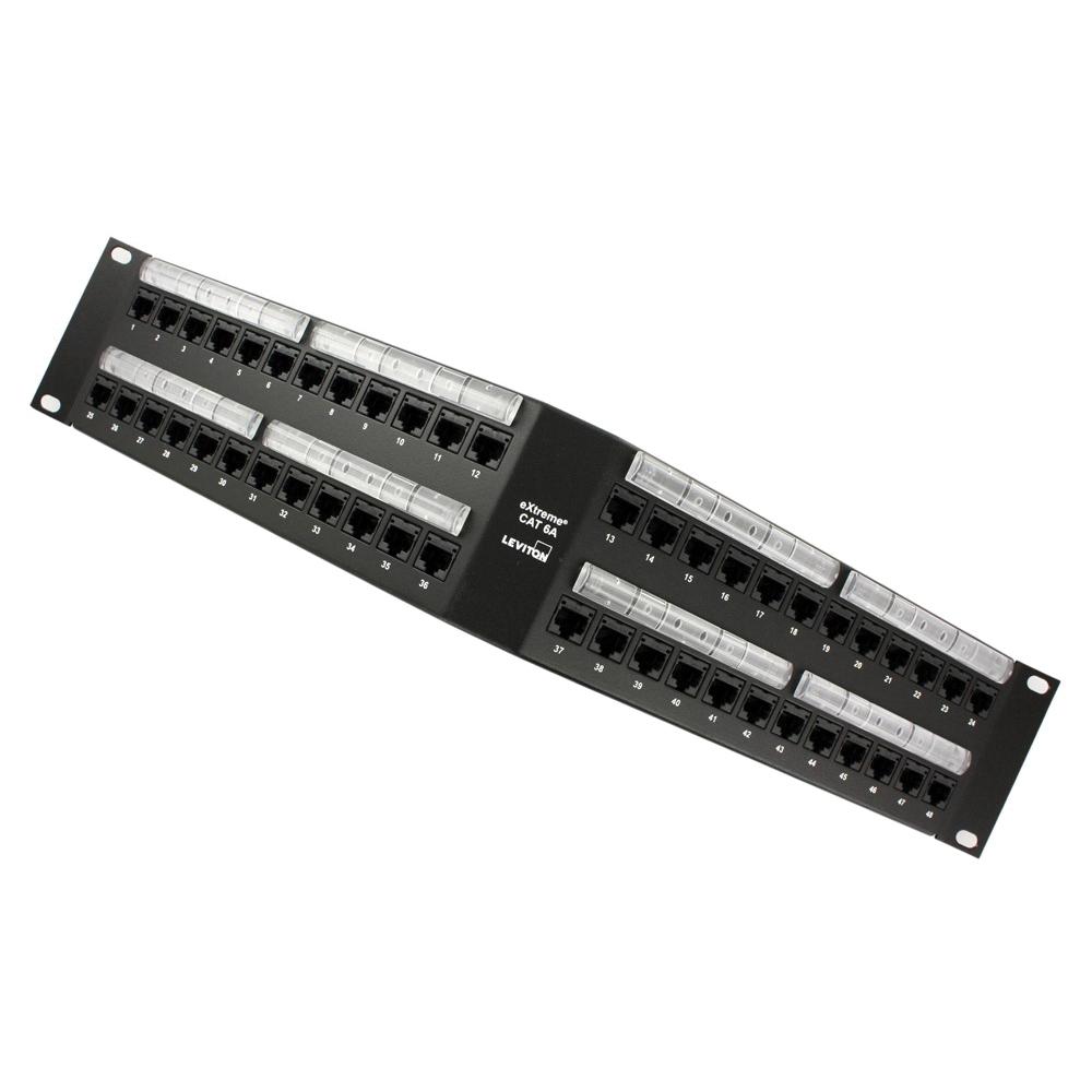 Leviton® eXtreme® 6A587-U48 2-RU Angled Patch Panel, 48 Ports, CAT 6a, Plastic/Steel