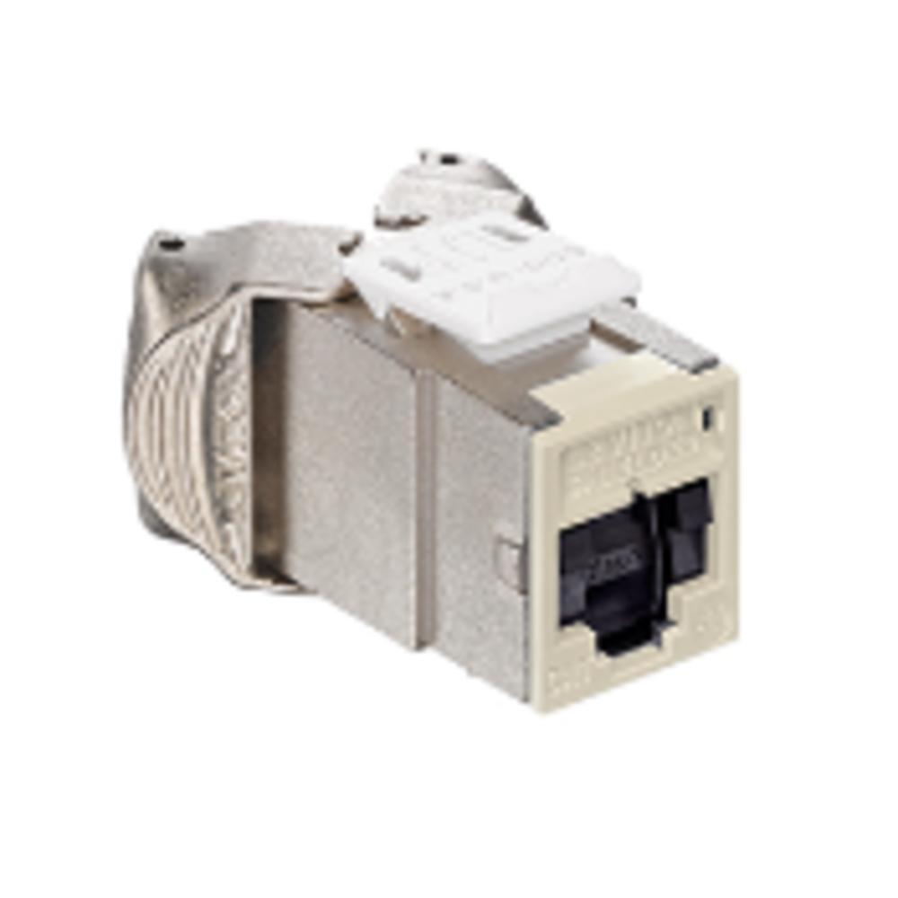 Leviton® Atlas-X1™ QuickPort® 6ASJK-ST6 Component Rated Shielded Connector With Shutters, CAT 6A Module, Surface Mount, Die Cast Zinc, Light Almond