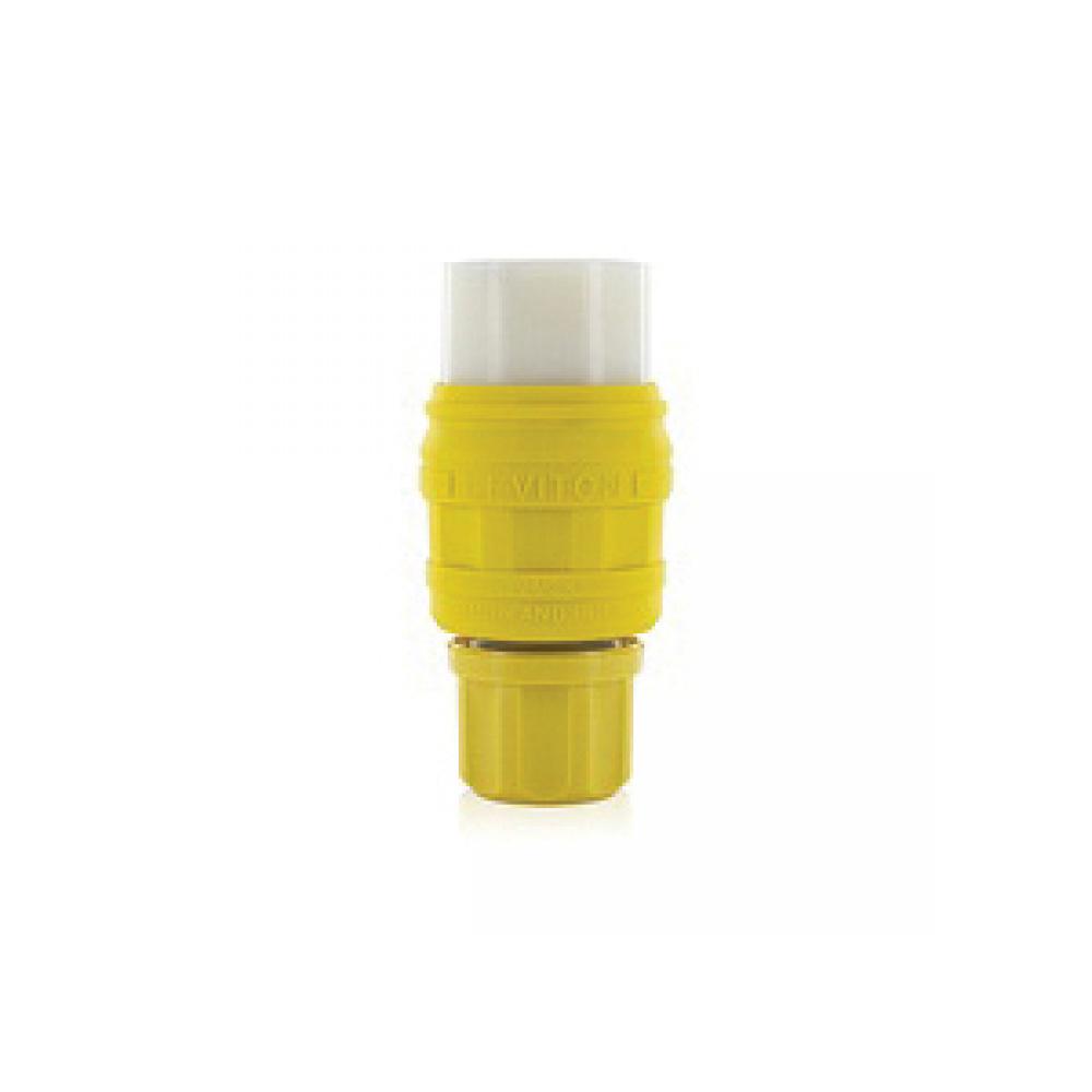 Leviton® Wetguard® 76W48-C 1-Phase Grounding Watertight Cable Mount Locking Connector, 250 VAC, 20 A, 2 Poles, 3 Wires, Yellow