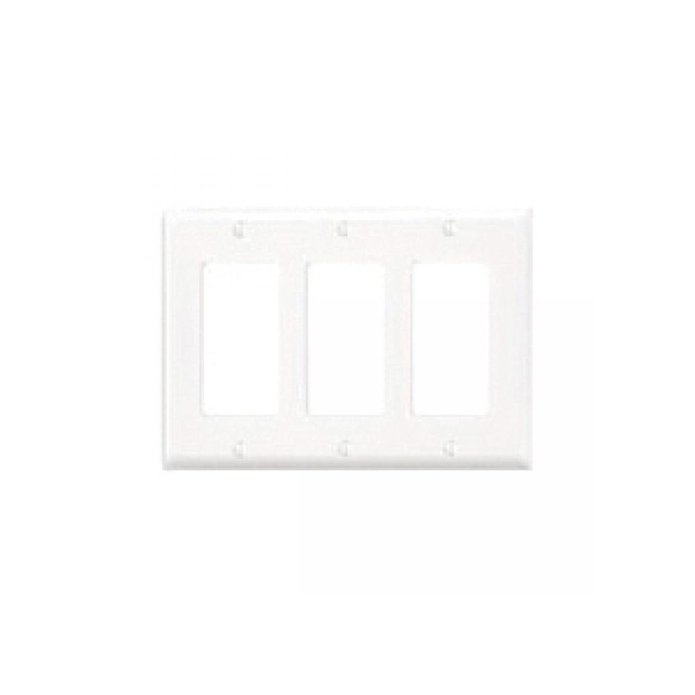 Leviton® Decora® 80411-NW Screwless Standard Size Wallplate, 3 Gangs, 4.5 in H x 6.37 in W, Thermoplastic, White