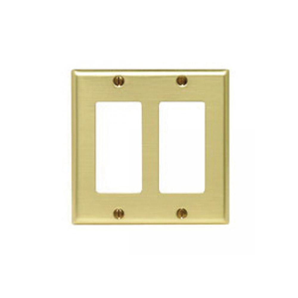 Leviton® Decora® 81409-PB Standard Sized Wallplate, 2 Gangs, 4.5 in H x 4.56 in W, Brass