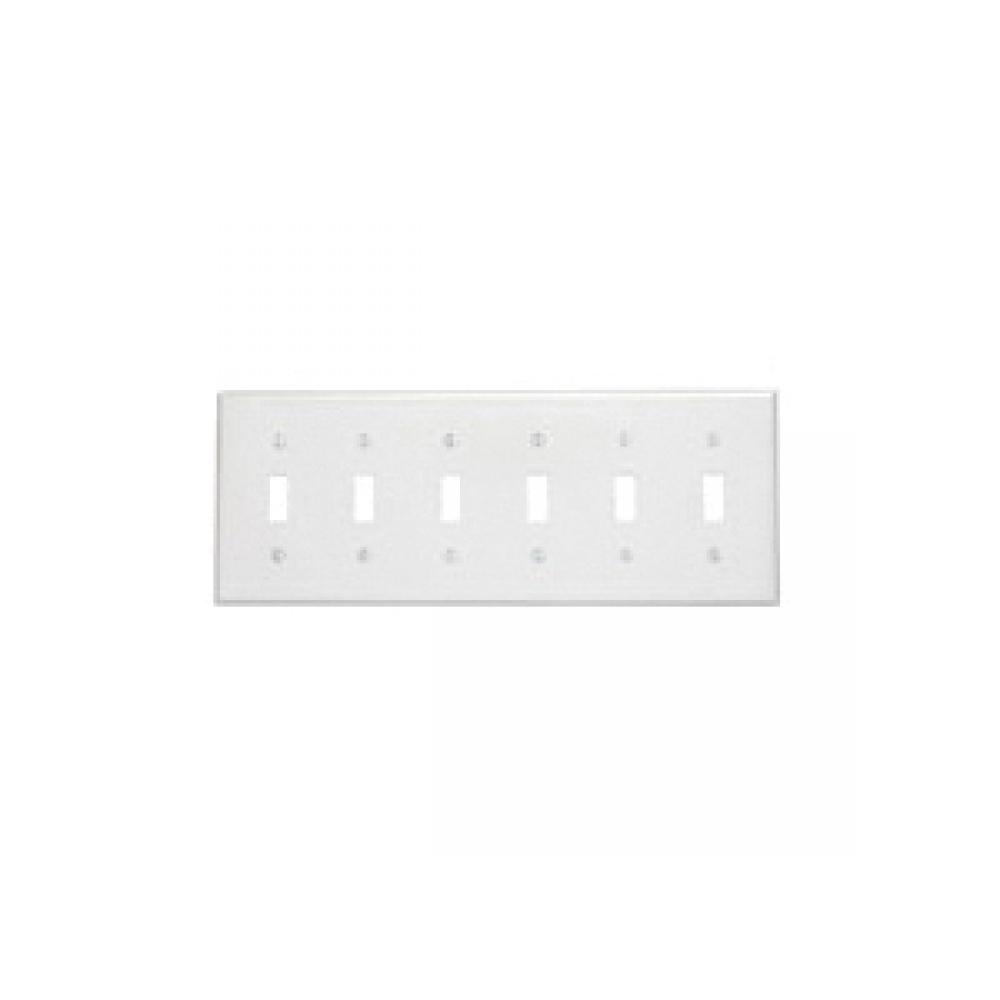 Leviton® 88036 Standard Size Traditional Wallplate, 6 Gangs, 4.5 in H x 11.8 in W, Thermoset, White