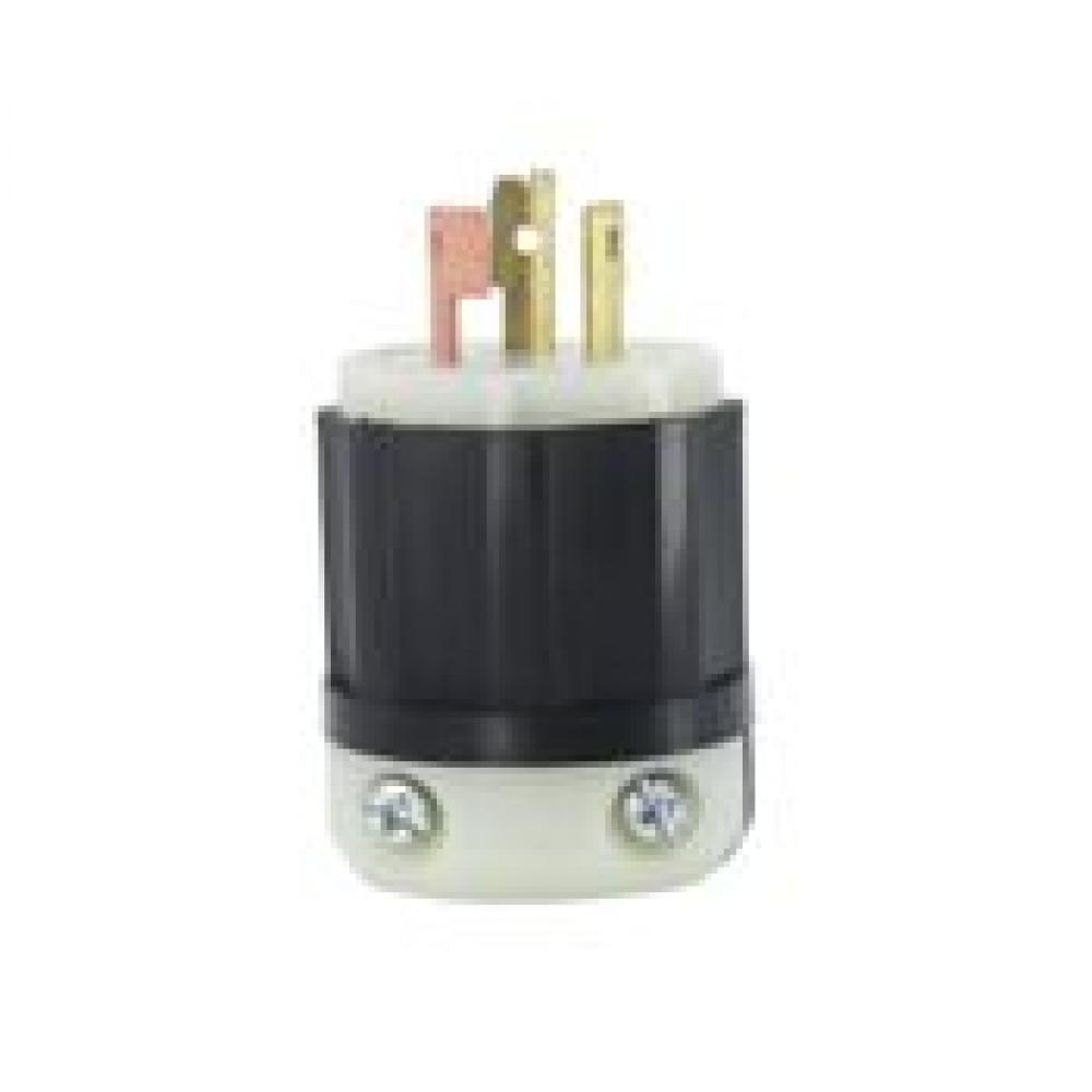 Leviton® 9965-GC Cable Mount Grounding Locking Plug, 125/250 VAC, 20 A, 3 Poles, 3 Wires, Black/White