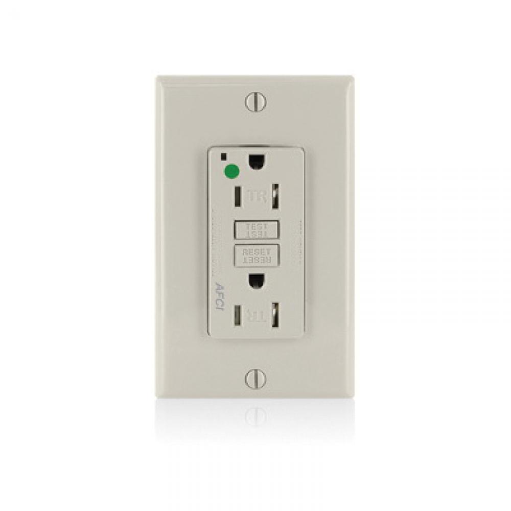 Leviton® AFTR1-HGT Tamper Resistant AFCI Receptacle With Light Almond Test, Reset Button, 125 VAC, 15 A, 2 Poles, 3 Wires, Light Almond