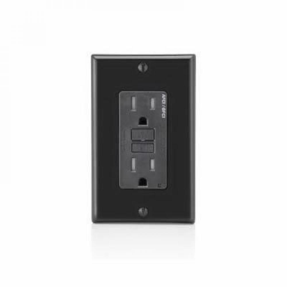 Leviton® Decora® AGTR1-E Dual Function Monochromatic Tamper Resistant AFCI/GFCI Receptacle, 125 VAC, 15 A, 2 Poles, 3 Wires, Black