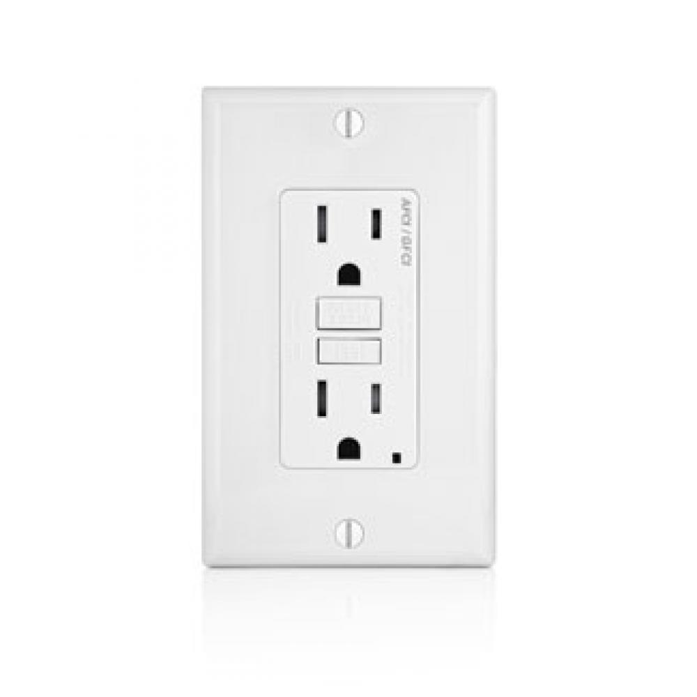 Leviton® Decora® AGTR1-W Dual Function Monochromatic Tamper Resistant AFCI/GFCI Receptacle With LED Indicator, 125 VAC, 15 A, 2 Poles, 3 Wires, White