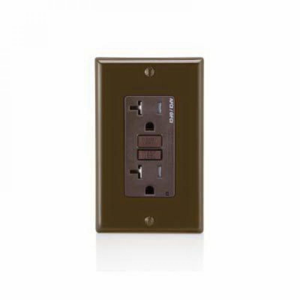 Leviton® Decora® AGTR2 Dual Function Monochromatic Tamper Resistant AFCI/GFCI Receptacle, 125 VAC, 20 A, 2 Poles, 3 Wires, Brown