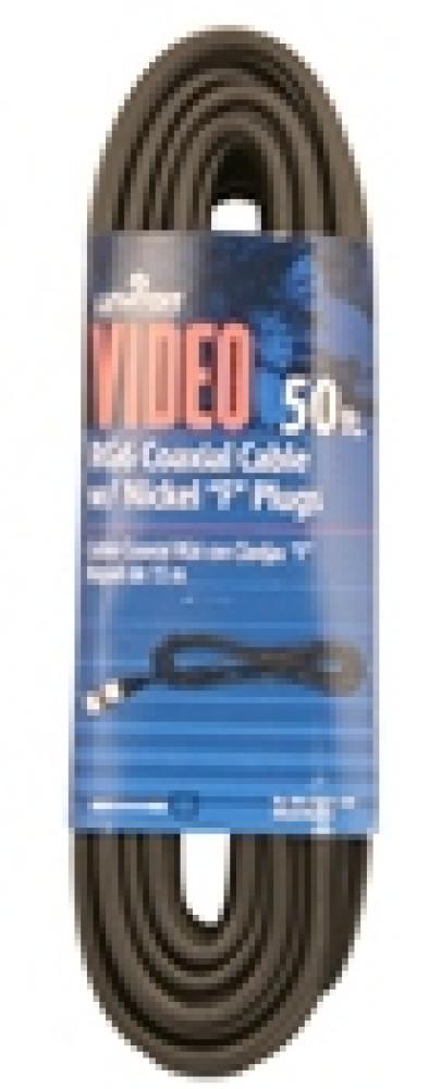 Leviton® C6851-50E Type RG6 Coaxial Cable With Nickel F Plug, Bare Solid Copper Conductor, 50 ft L