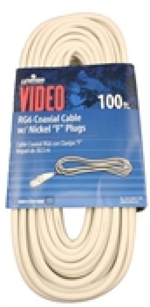 Leviton® C6851-CW Type RG6 Coaxial Cable With Nickel F Plug, Bare Solid Copper Conductor, 100 ft L