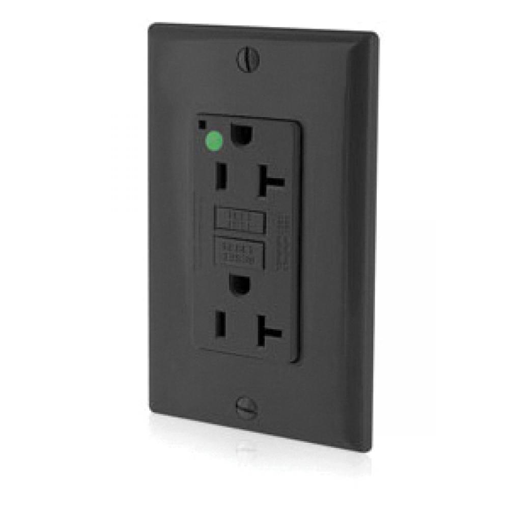Leviton® SmartlockPro® Slim® GFNT2-HGE Duplex Feed Through Non-Tamper Resistant Self-Test GFCI Receptacle, 125 VAC, 20 A, 2 Poles, 3 Wires, Black