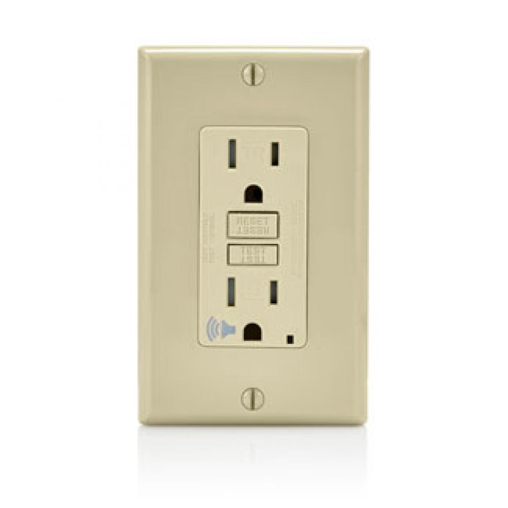 Leviton® GFTA1-I Self-Test Tamper Resistant GFCI Receptacle With Audible Trip Alert, Ivory Test, Reset Button, 125 VAC, 15 A, 2 Poles, 3 Wires, Ivory