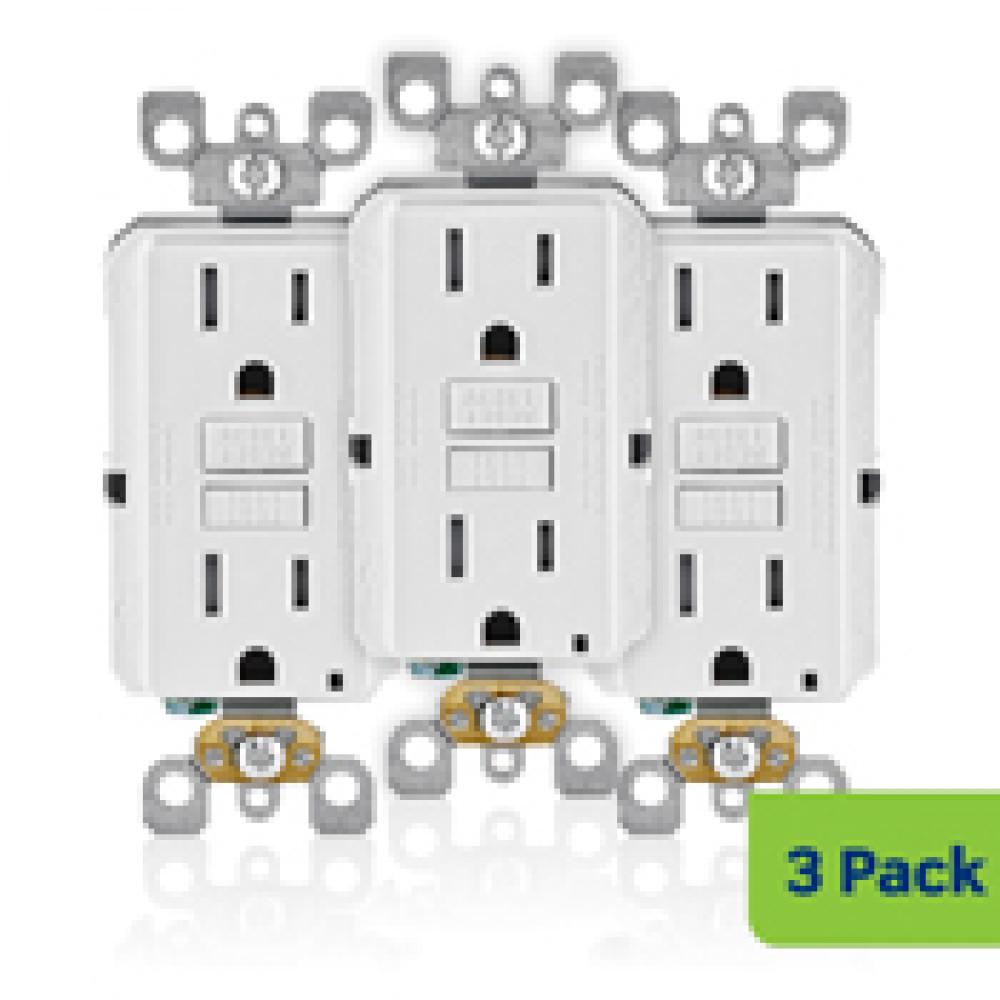 Leviton® Decora® GFTR1-3W Feed Through Self-Test Slim Tamper Resistant GFCI Receptacle With White Test, Reset Button, 120 VAC, 15 A, 2 Poles, 3 Wires, White
