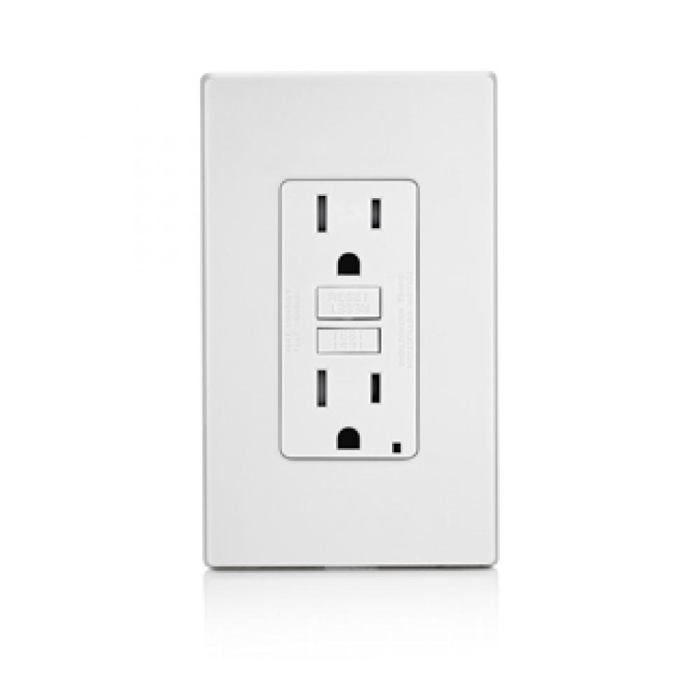 Leviton® Decora® GFTR1-PW Duplex Feed Through Monochromatic Self-Test Slim Standard Tamper Resistant GFCI Receptacle, 120 VAC, 15 A, 2 Poles, 3 Wires, White