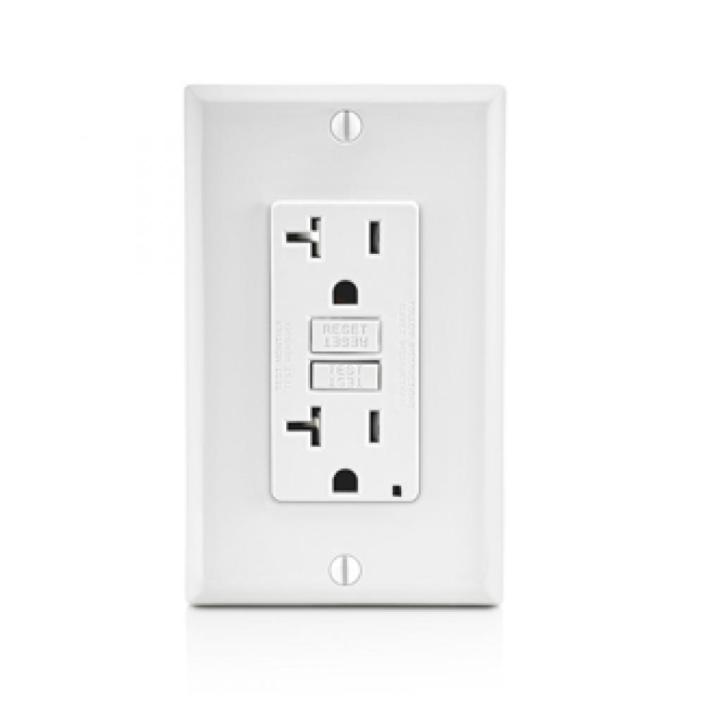 Leviton® GFTR2-FW Feed Through Self-Test Slim Tamper Resistant GFCI Receptacle With White Test, Reset Button, 120 VAC, 20 A, 2 Poles, 3 Wires, White