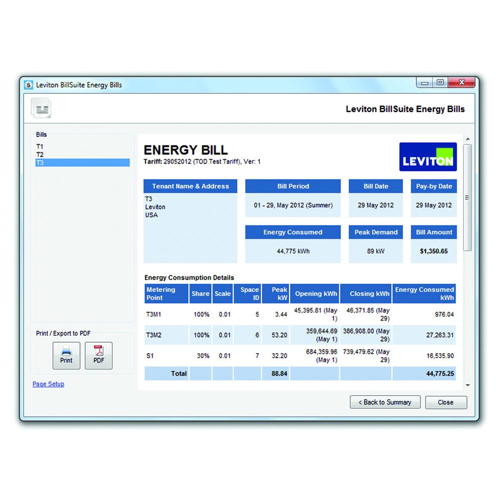 Leviton® VerifEye™ LBSSW-8L 2.3 Version PLC Software, Title: Bill Suite