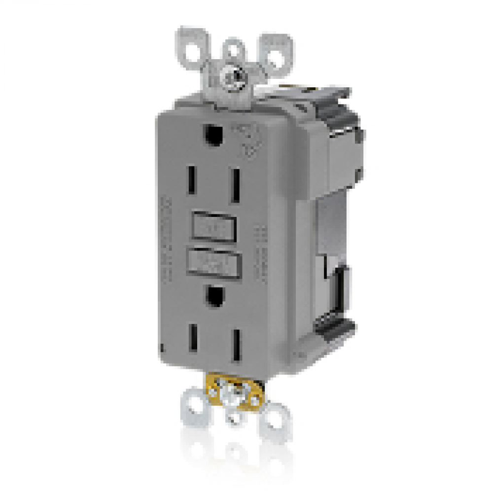 Leviton® M7599-GY Duplex Outlet GFCI Receptacle, 125 VAC, 15 A, 2 Poles, 3 Wires, Gray
