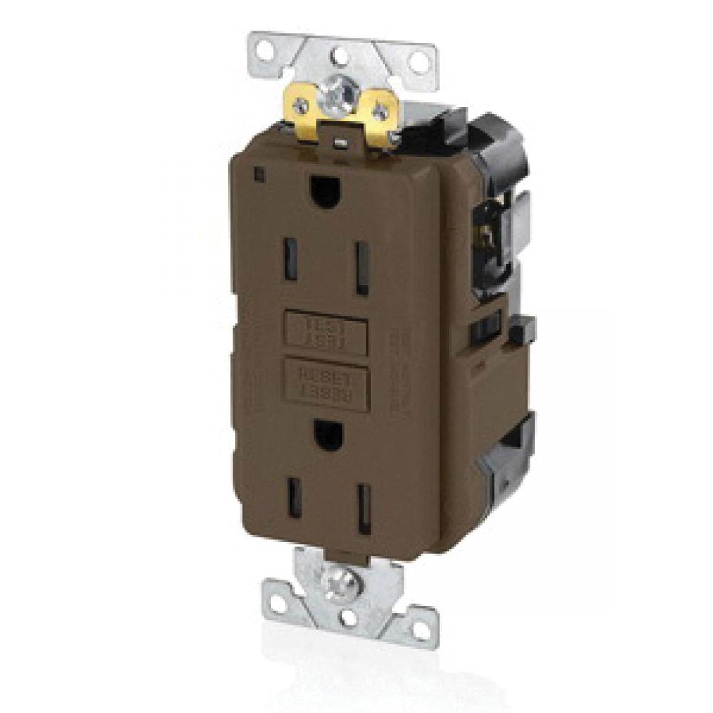 Leviton® SmartlockPro® Slim® MGFN1 Duplex Feed Through Self-Test GFCI Receptacle, 125 VAC, 15 A, 2 Poles, 3 Wires, Brown