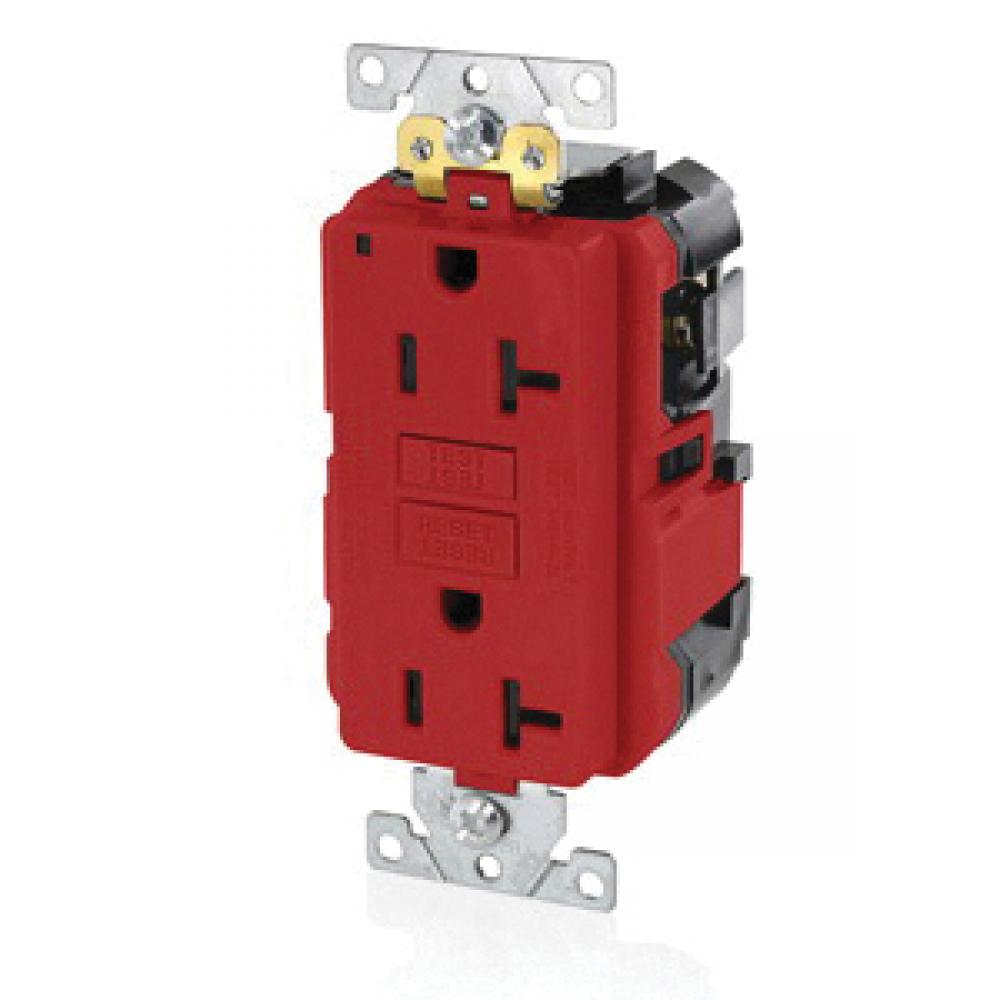Leviton® SmartlockPro® Slim® MGFN2-R Duplex Feed Through Self-Test GFCI Receptacle, 125 VAC, 20 A, 2 Poles, 3 Wires, Red