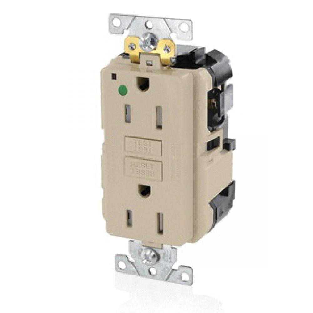 Leviton® SmartlockPro® Slim® MGFT1-HGI Duplex Feed Through Self-Test Tamper Resistant GFCI Receptacle, 125 VAC, 15 A, 2 Poles, 3 Wires, Ivory