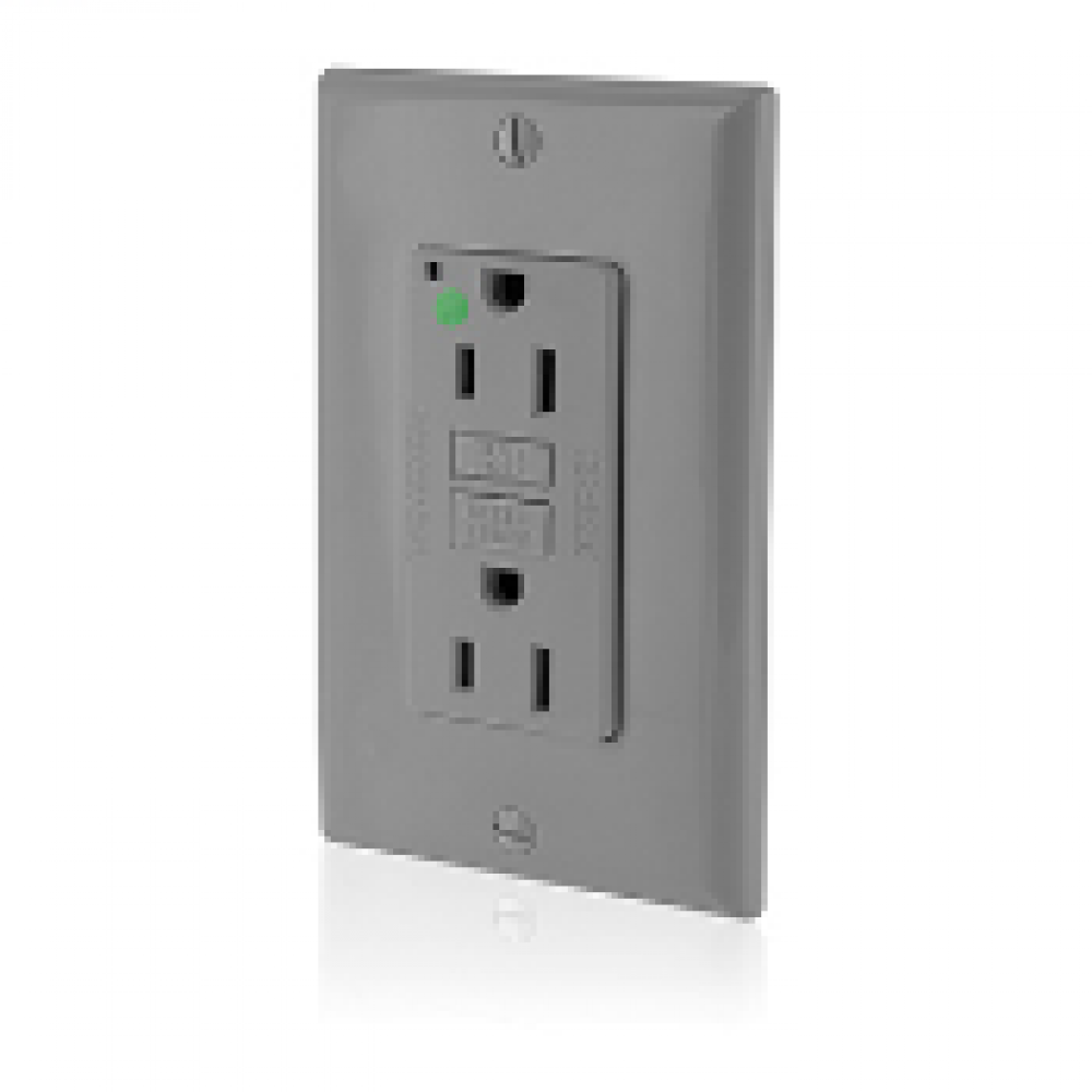 Leviton® N7599-HFG GFCI Receptacle, 125 VAC, 15 A, 2 Poles, 3 Wires, Gray