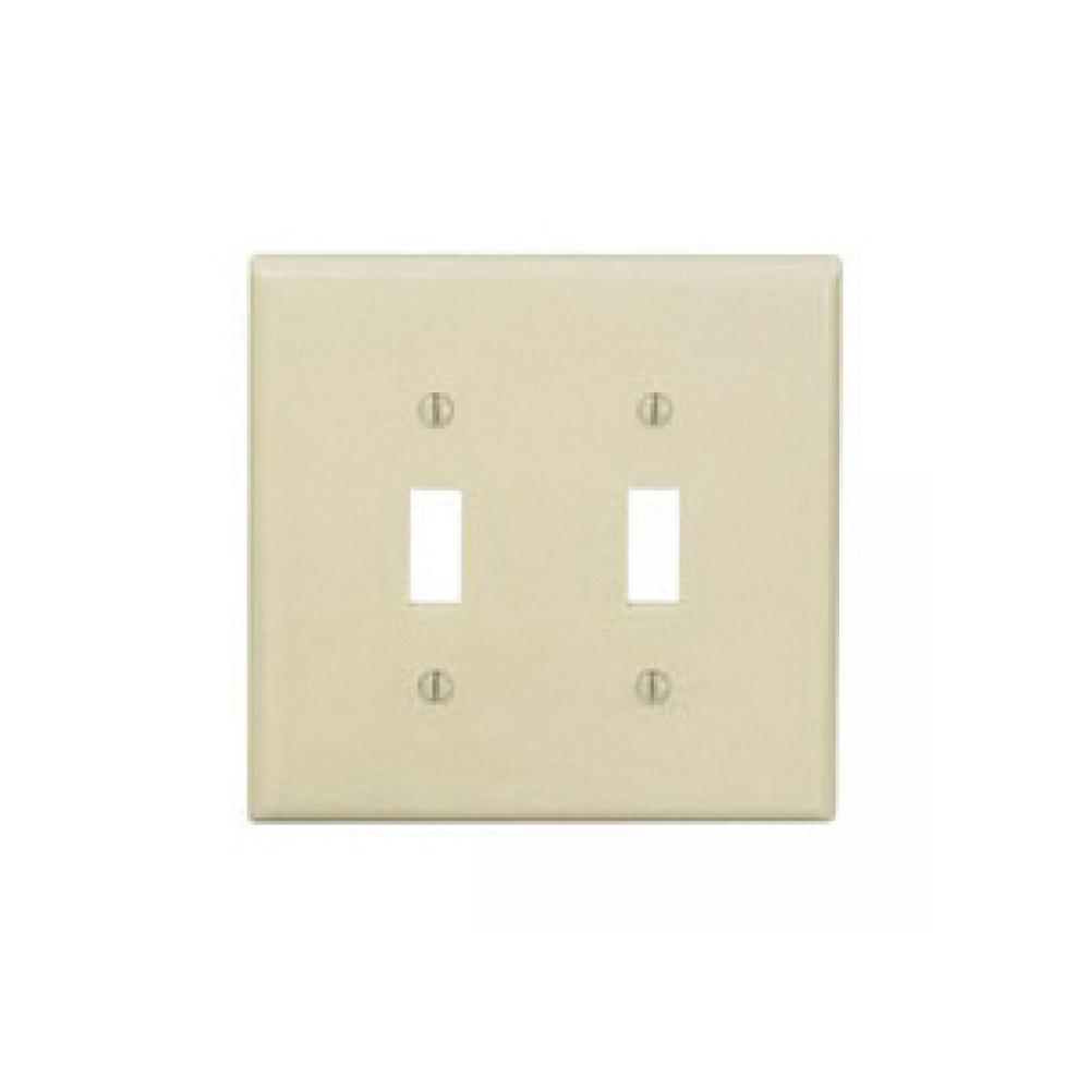 Leviton® PJ2-T Midway Size Traditional Wallplate, 2 Gangs, 4.875 in H x 4.94 in W, Thermoplastic, Light Almond