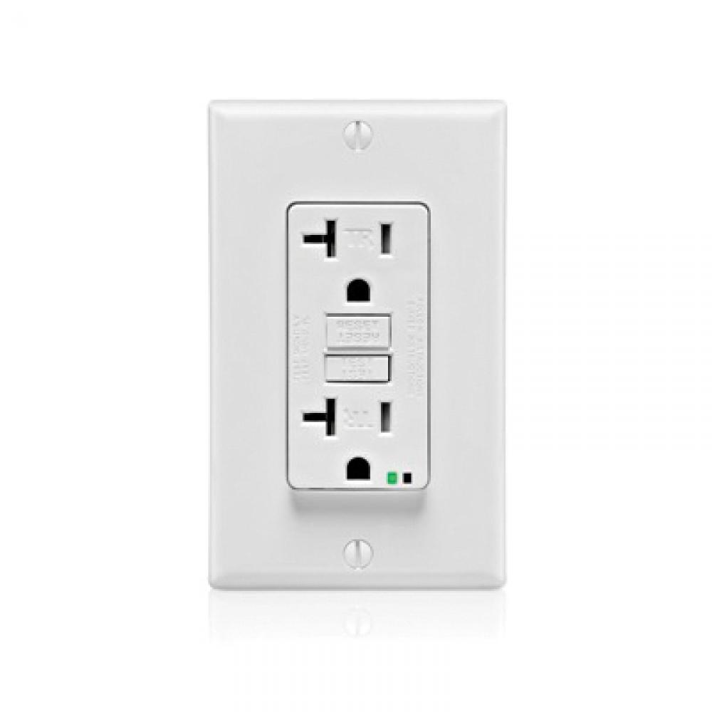 Leviton® S7899-W Slim Duplex Self-Test Tamper Resistant GFCI Receptacle, 125 VAC, 20 A, 2 Poles, 3 Wires, White