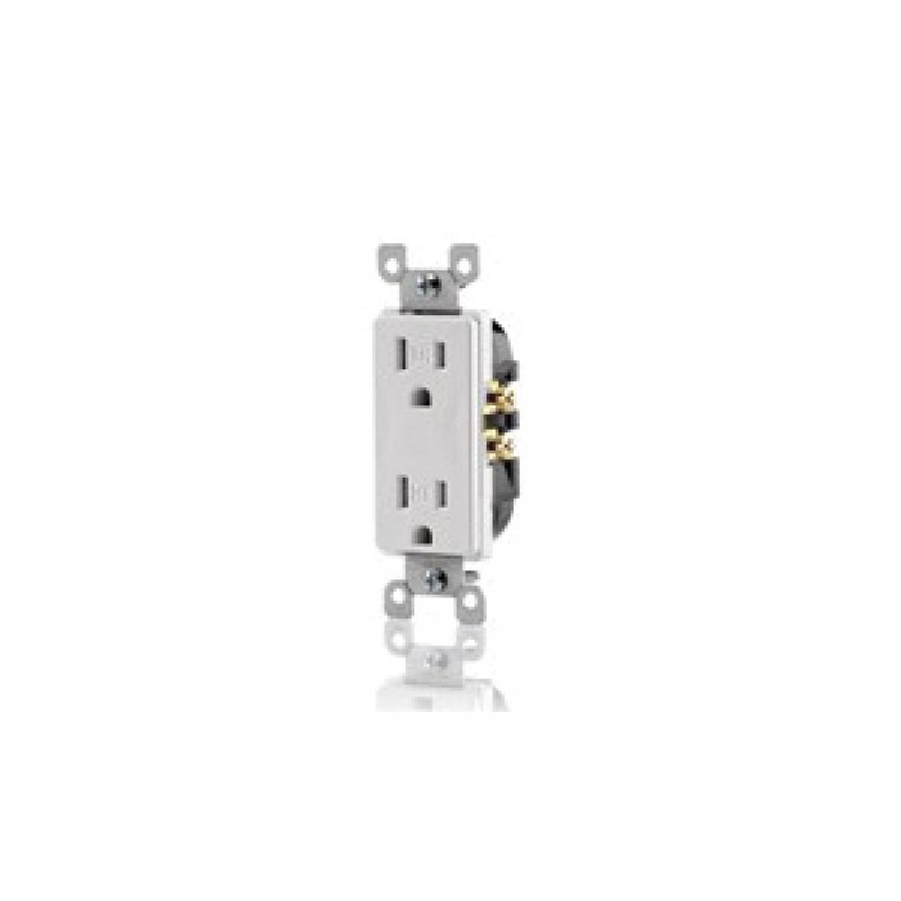 Leviton® Decora® T5325-W Duplex Grounding Tamper Resistant Straight Blade Receptacle, 125 VAC, 15 A, 2 Poles, 3 Wires, White