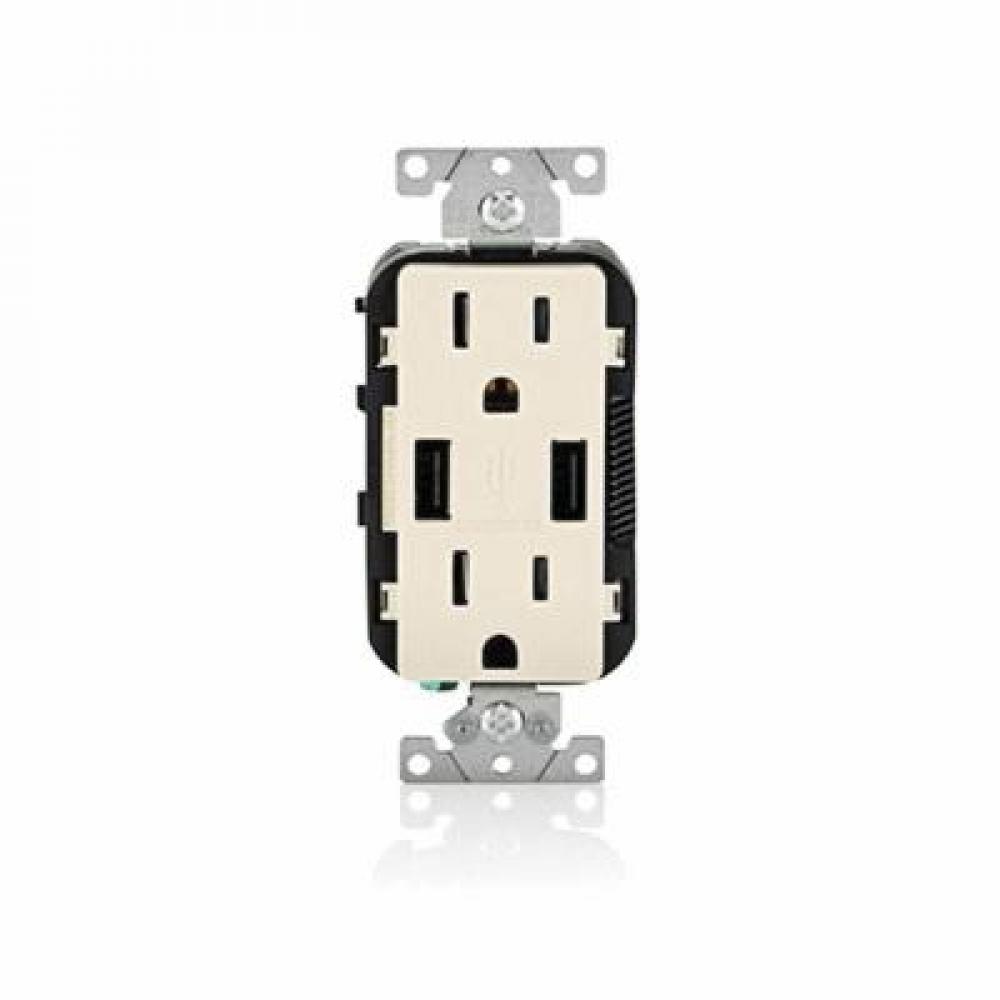 Leviton® Decora® T5632-T Duplex Tamper Resistant Receptacle and USB Charger, 15 A/125 VAC/0.5 hp, 2 Poles, 3 Wires, Light Almond