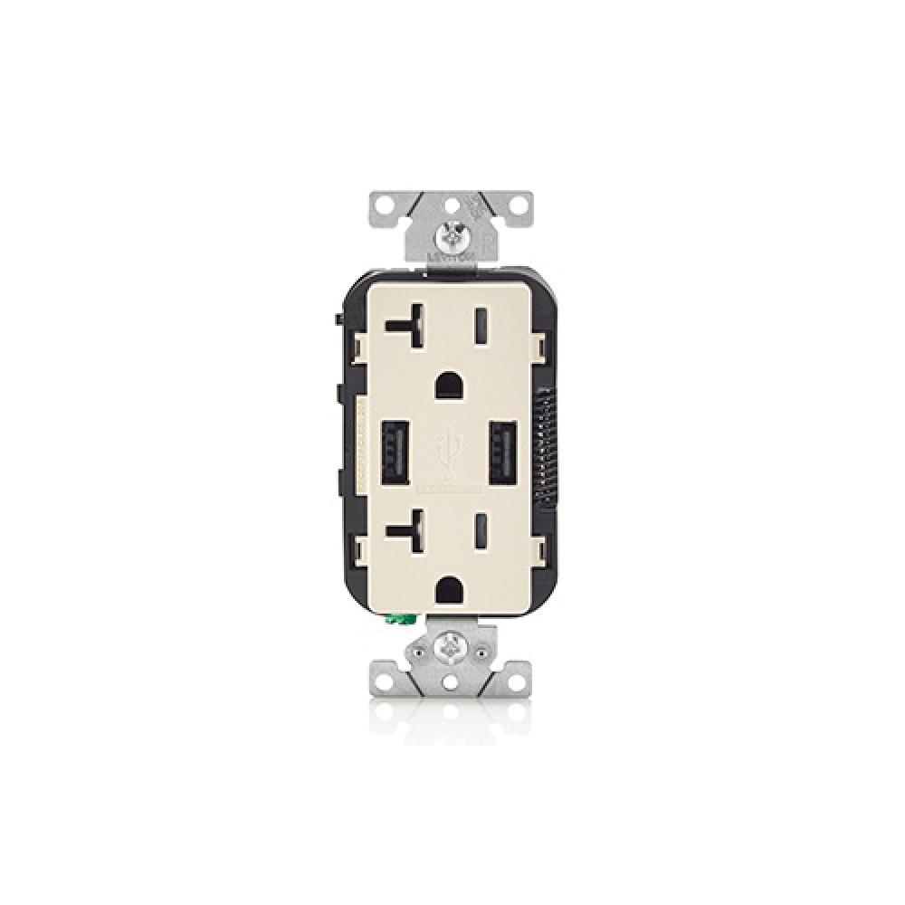 Leviton® T5832-T Combination Duplex Tamper Resistant Receptacle and USB Charger, 20 A/125 VAC/1 hp, Light Almond